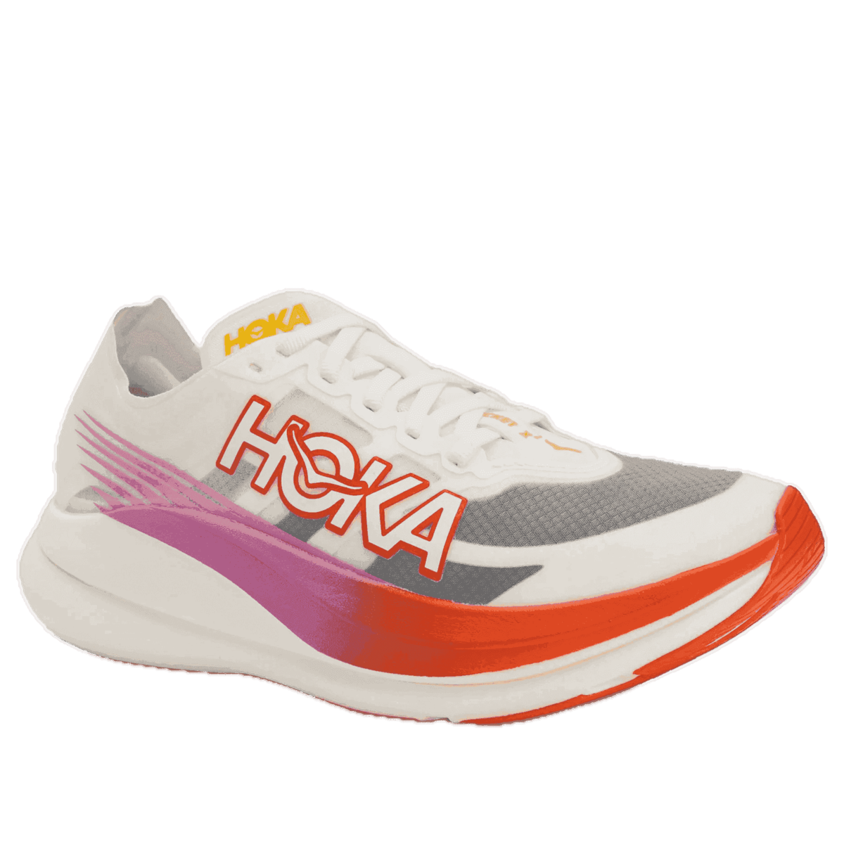 Conquer your marathon with the HOKA Rocket X 2. Its PROFLY-X™ midsole delivers a cushioned landing and responsive takeoff, enhanced by a full-length carbon plate for stability and propulsion. A breathable mesh upper and durable outsole with superior grip complete this high-performance running shoe. Set new personal bests!